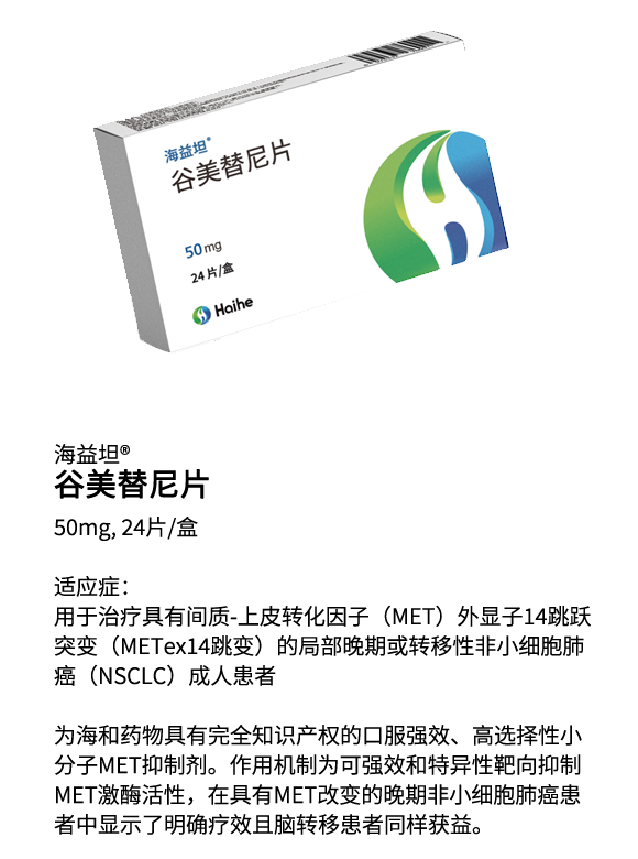 • 1款具有完全知识产权的1类新药MET抑制剂海益坦®(谷美替尼片)已获得NMPA附条件批准上市